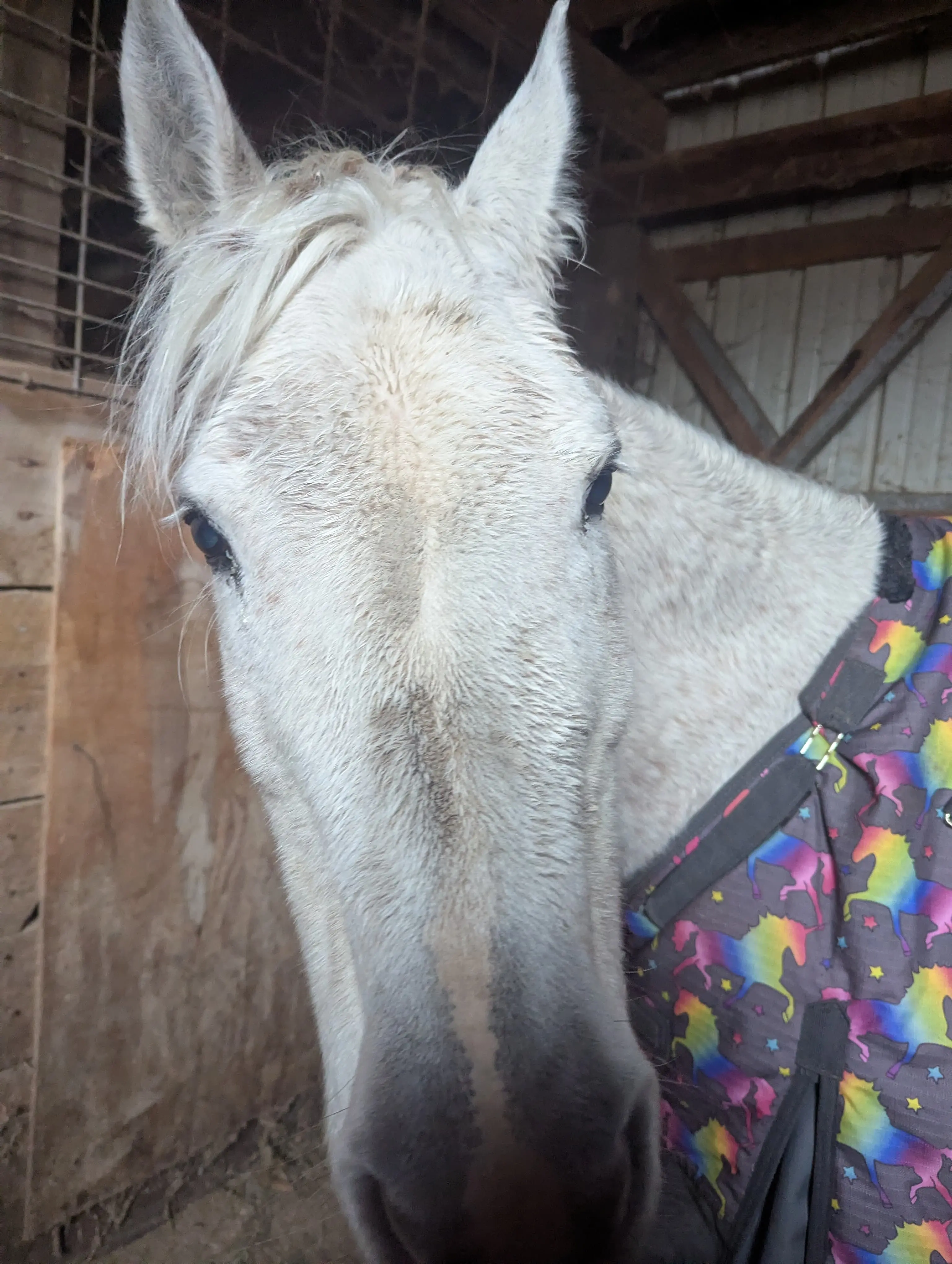 My grandpa died over the weekend and I’ve been taking it really hard. I wanted to go see Sandy before the viewing today so I went right after she had breakfast. She was very concerned with me crying and had to come investigate.