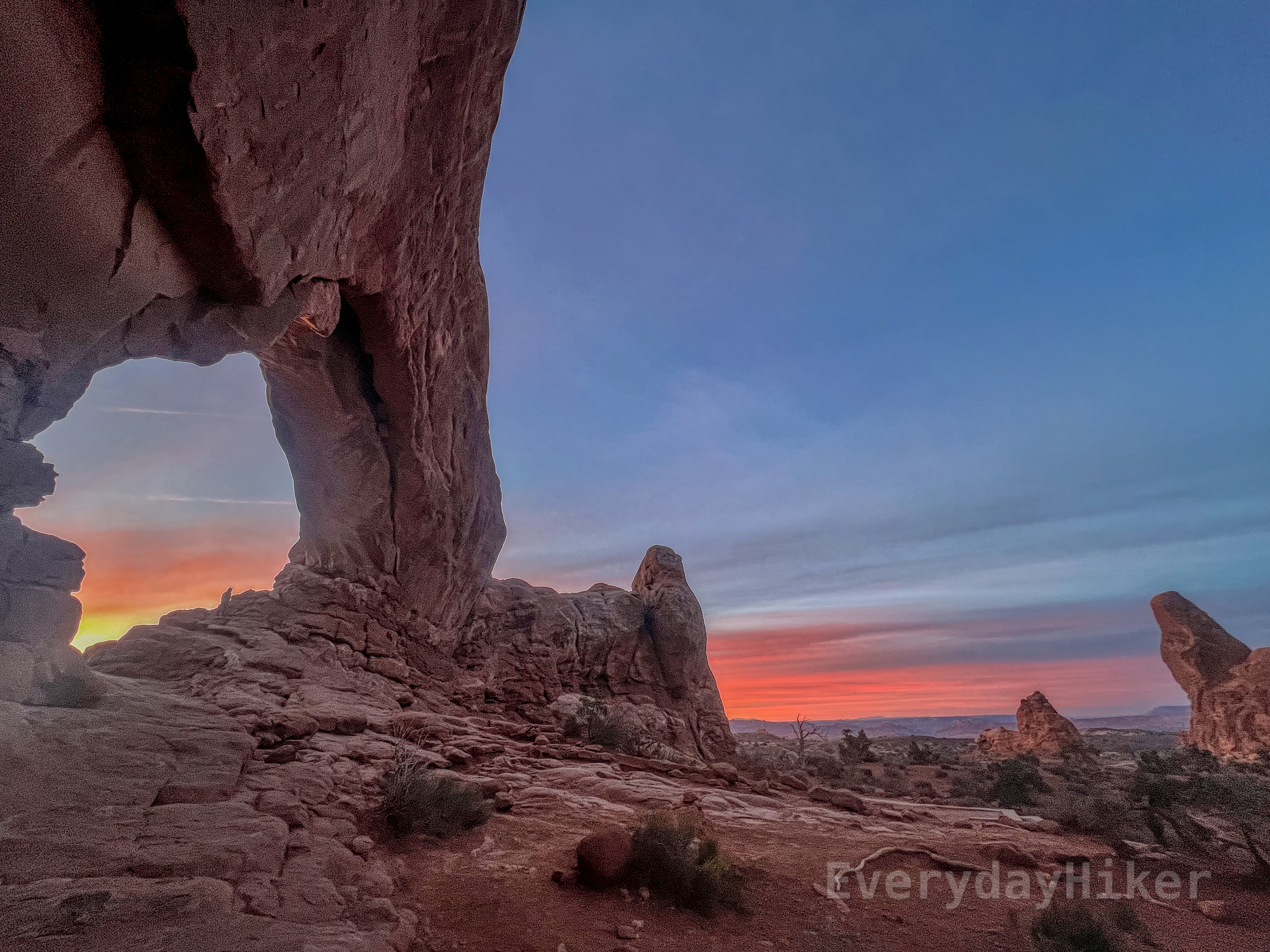 Rock stairs lead to the North Window and the arch above in as the sun continues its morning color show.