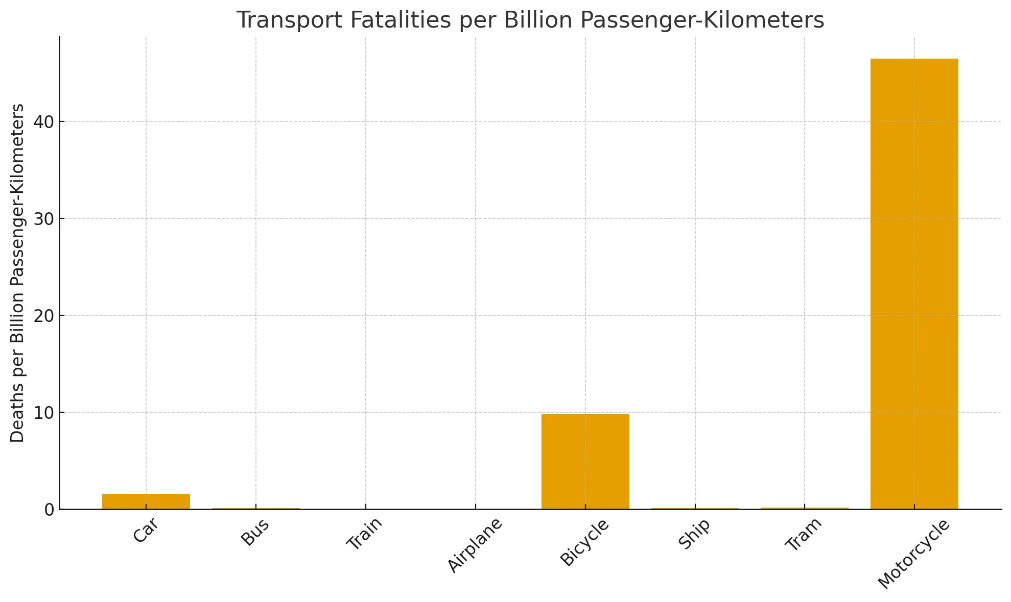 One hour of Motorcycles transit, on the other hand, is now ~29x more deadly than an hour of car transit, ~276x more deadly than an hour of aircraft transit…