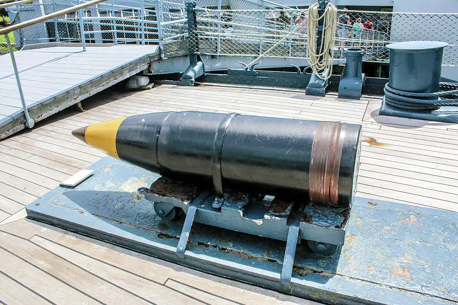 Because this is on the tour route of a museum ship, these shells have either had their bursting charges removed to render them inert, or they are fiberglass replicas.