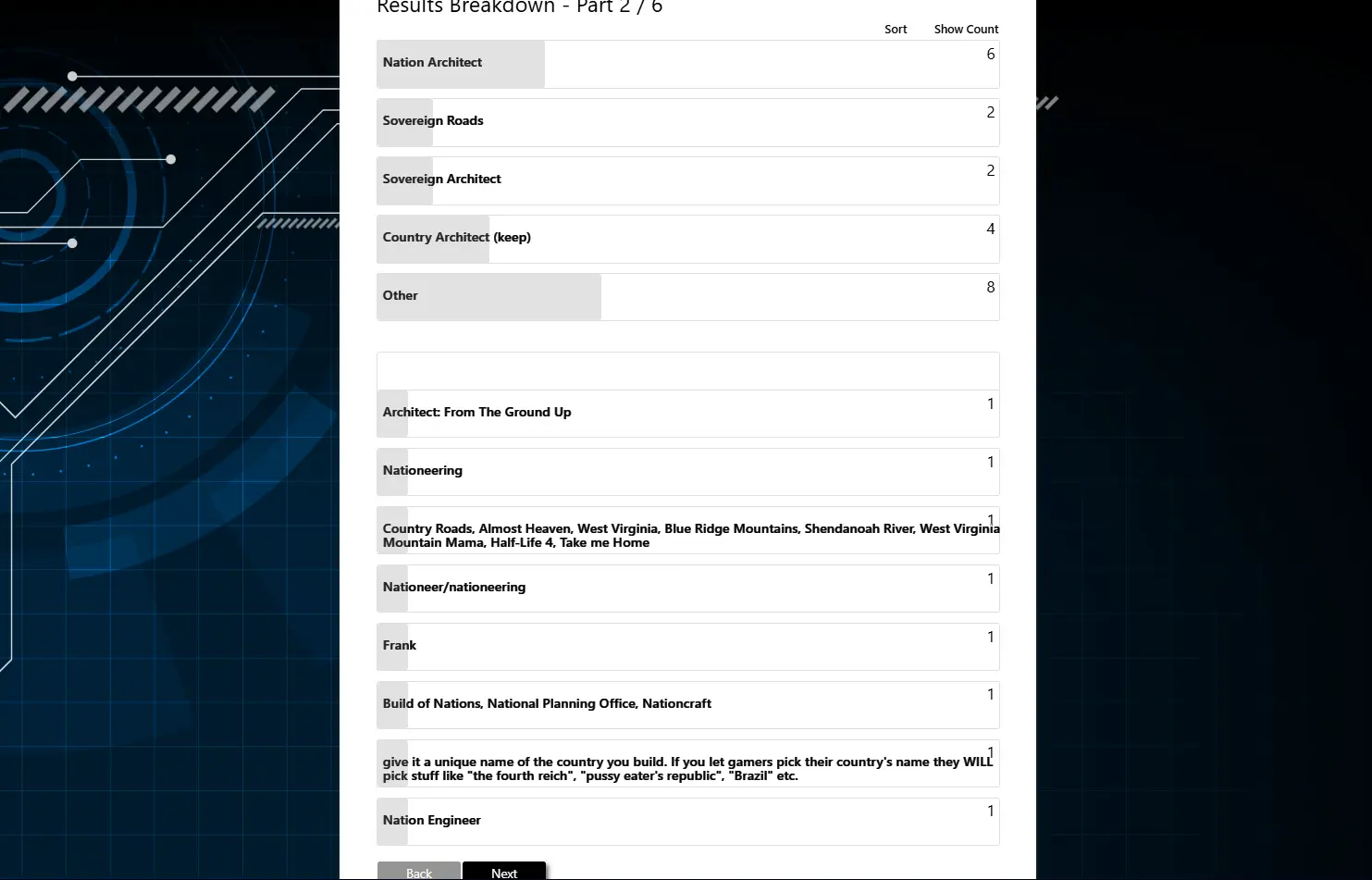 “Nation Architect” and “Sovereign Architect” and “Sovereign Roads” are the other ideas.