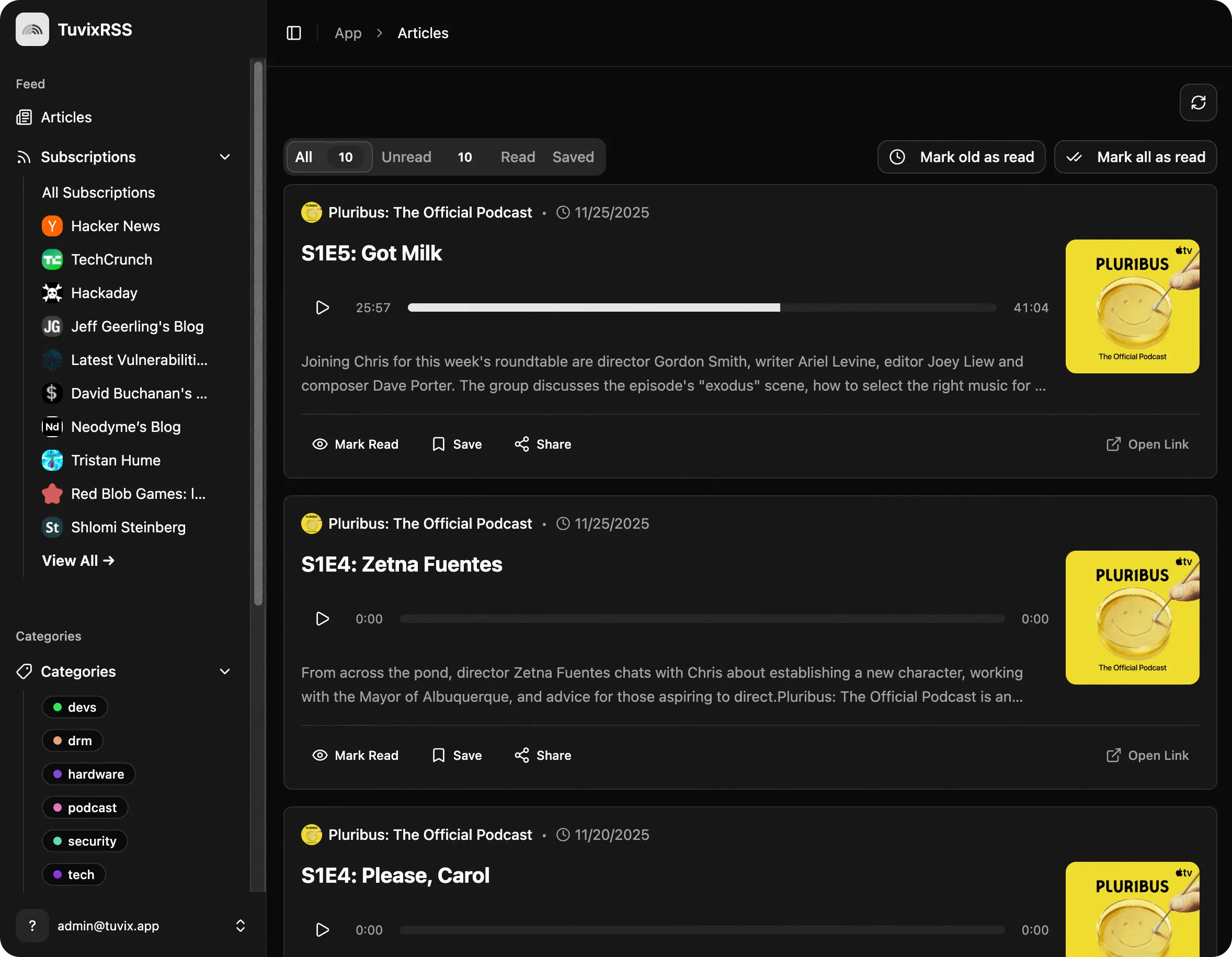 Same concept, different implementation. FreshRSS is a PHP app, in my opinion… a little ugly, still super functional of course. I wanted to try to create something with a more modern UX, and try to appeal to not just the tech folks. FreshRSS still supports things I don’t yet, like WebSub, but give me some time to catch up. I have the massive benefit of just starting much later when many awesome libraries and AI exist.