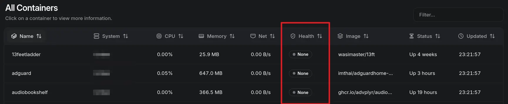 - Is there a “quick” way to know if a container has healthcheck as a feature.