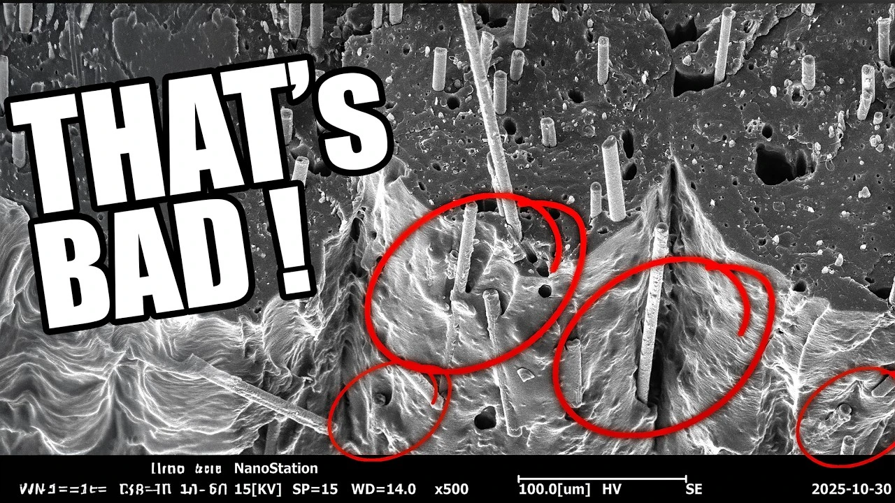 This video critically examines the popular perception of PLA carbon fiber (PLA CF) reinforced 3D printing filament, arguing that it is an even bigger scam than previously thought. By conducting bending tests, microstructural analysis, and CT imaging, the creator demonstrates that PLA CF does not improve mechanical strength, stiffness, or impact resistance compared to regular PLA. Instead, carbon fibers disrupt layer bonding, create voids, and lead to stress concentration, ultimately weakening printed parts.