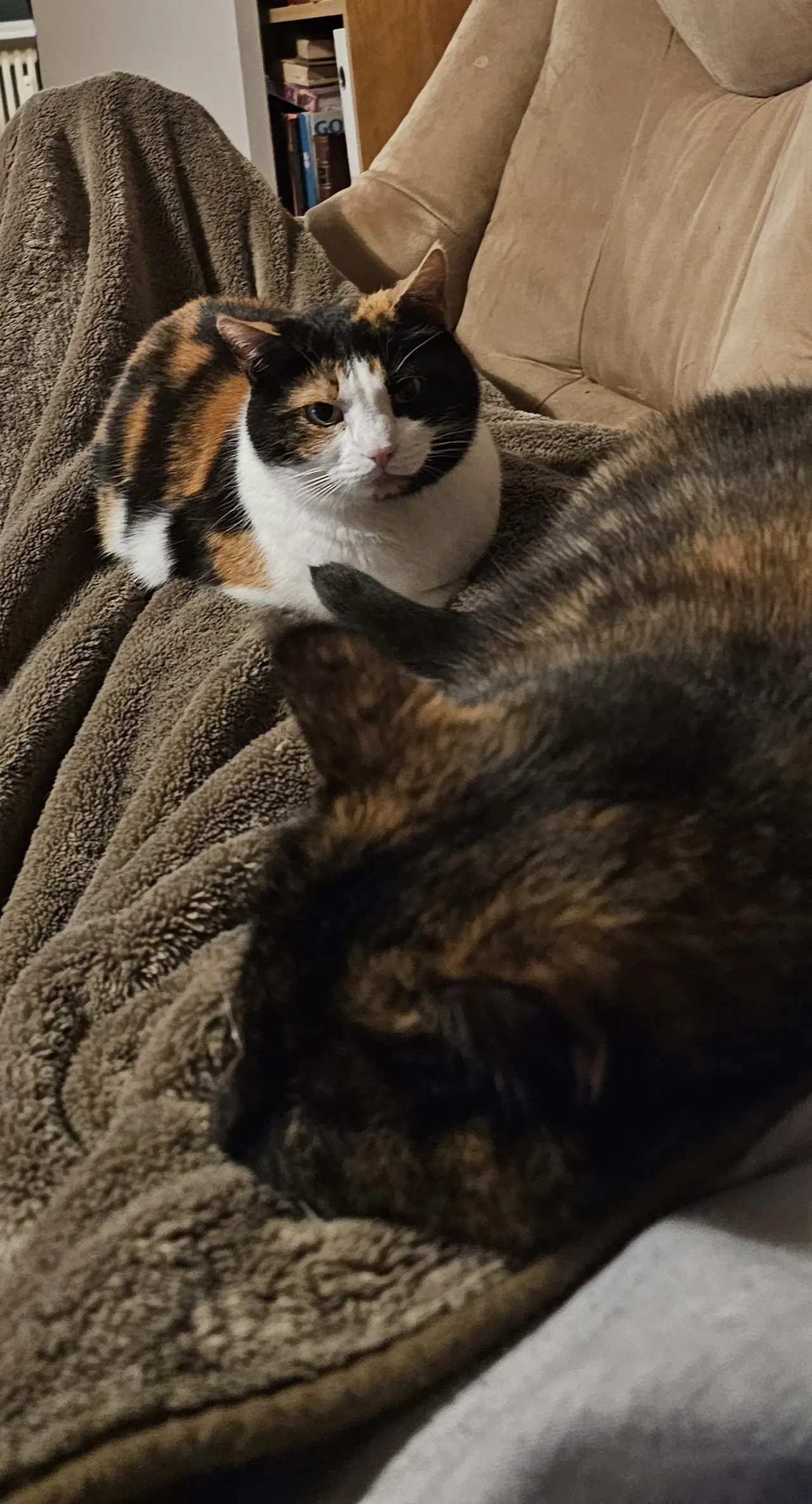 The calico in the back looks annoyed you’ve disturbed their nap, just so you can take a picture 😂