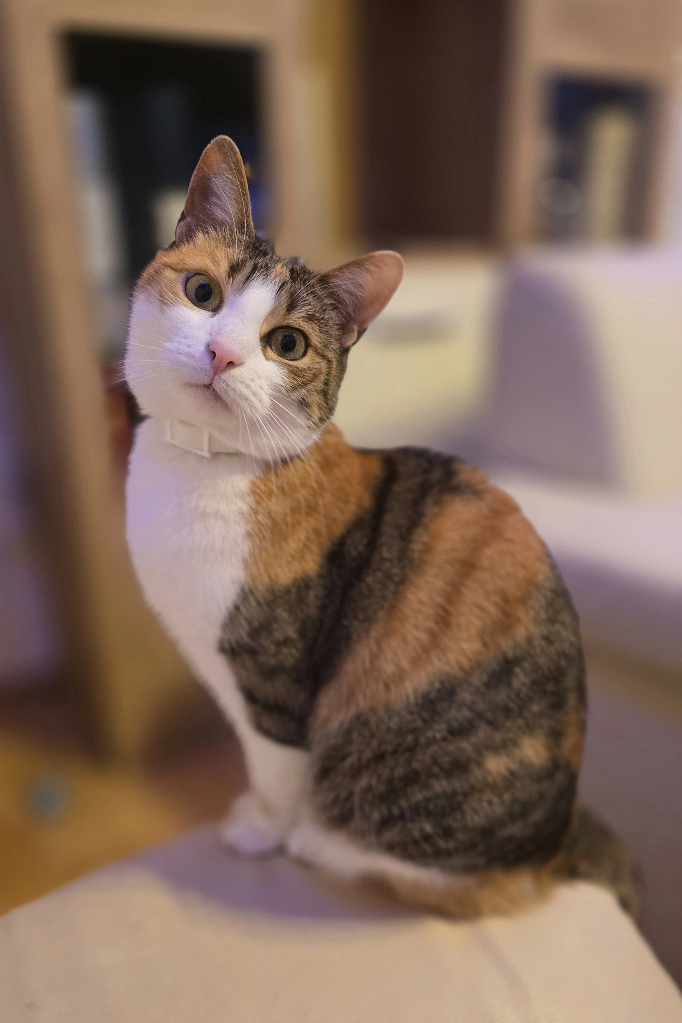 It looks like she’s a cyberpunk cat with panel lines on her face. She must have gotten an upgraded forehead for superior headbumping power