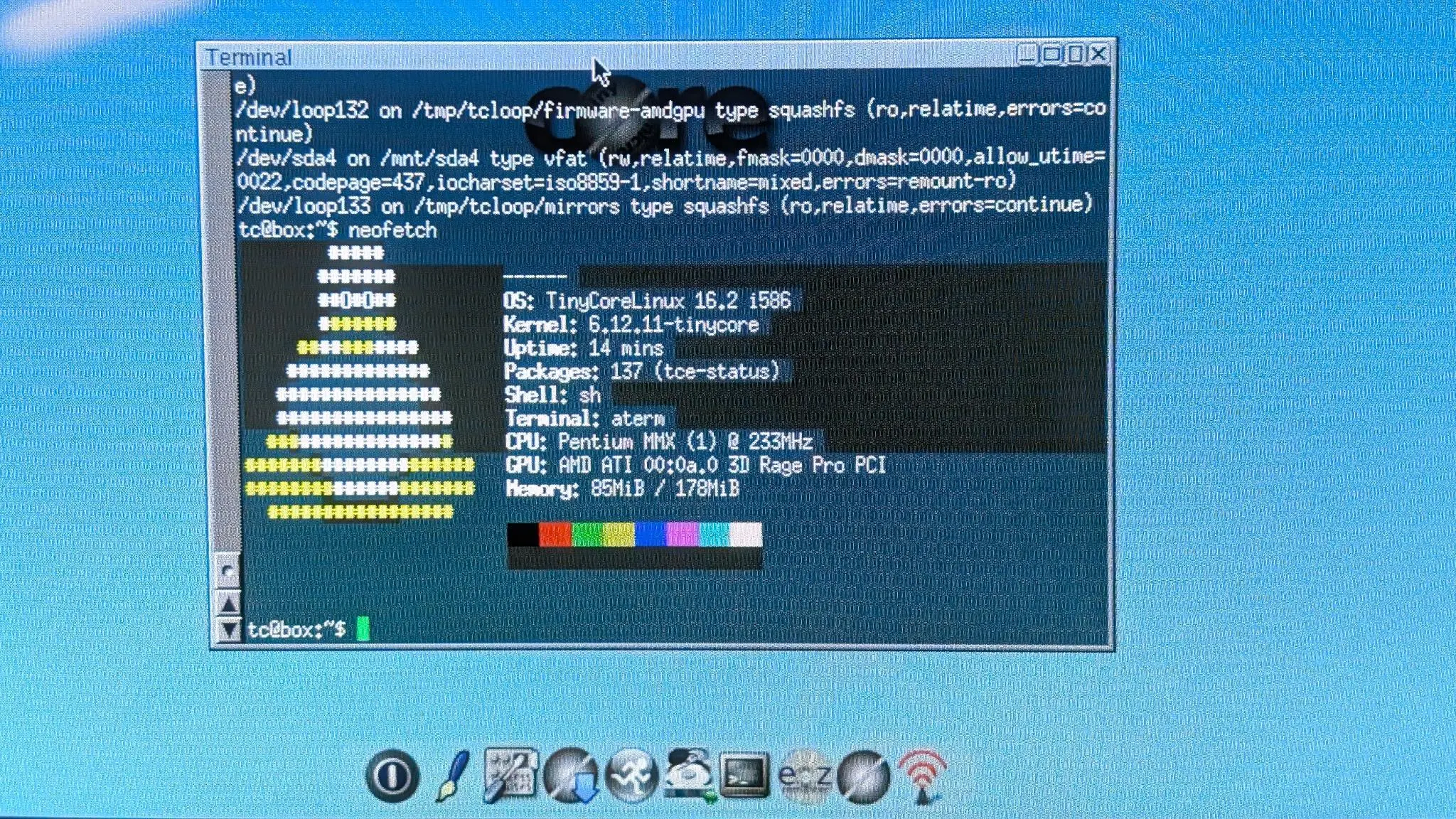 I’ve been on a retro kick. Recently I’ve been messing with a Pentium 233 MMX. I burned a tinycore Linux CD a couple days ago so I could make this: