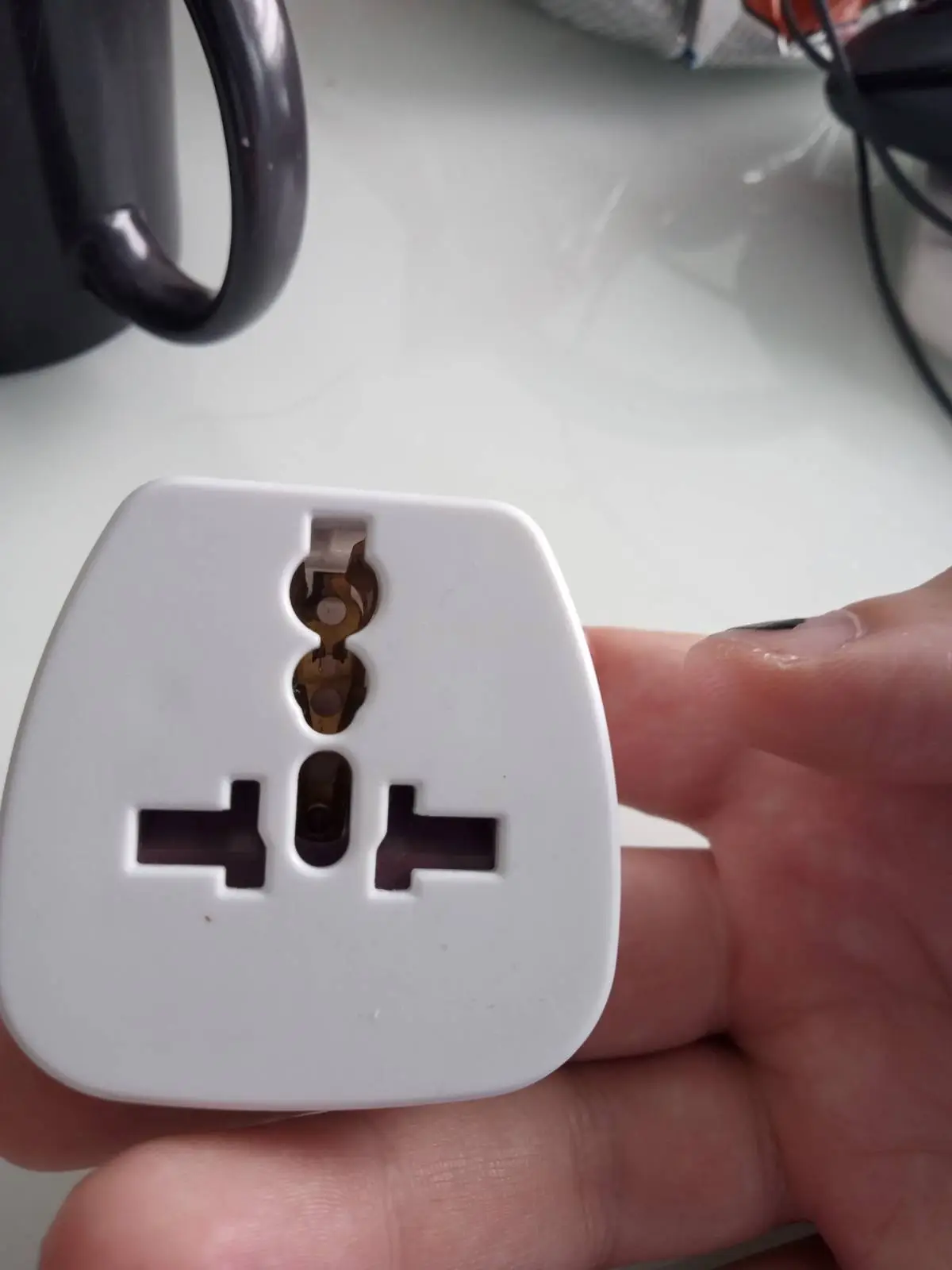 I think it’s because mine doesn’t have Schuko (type f) support … probably because it’s real? And maybe because his adaptation uses “Euro”/A combination, wheras mine uses vertical axes for the “euro” plug.