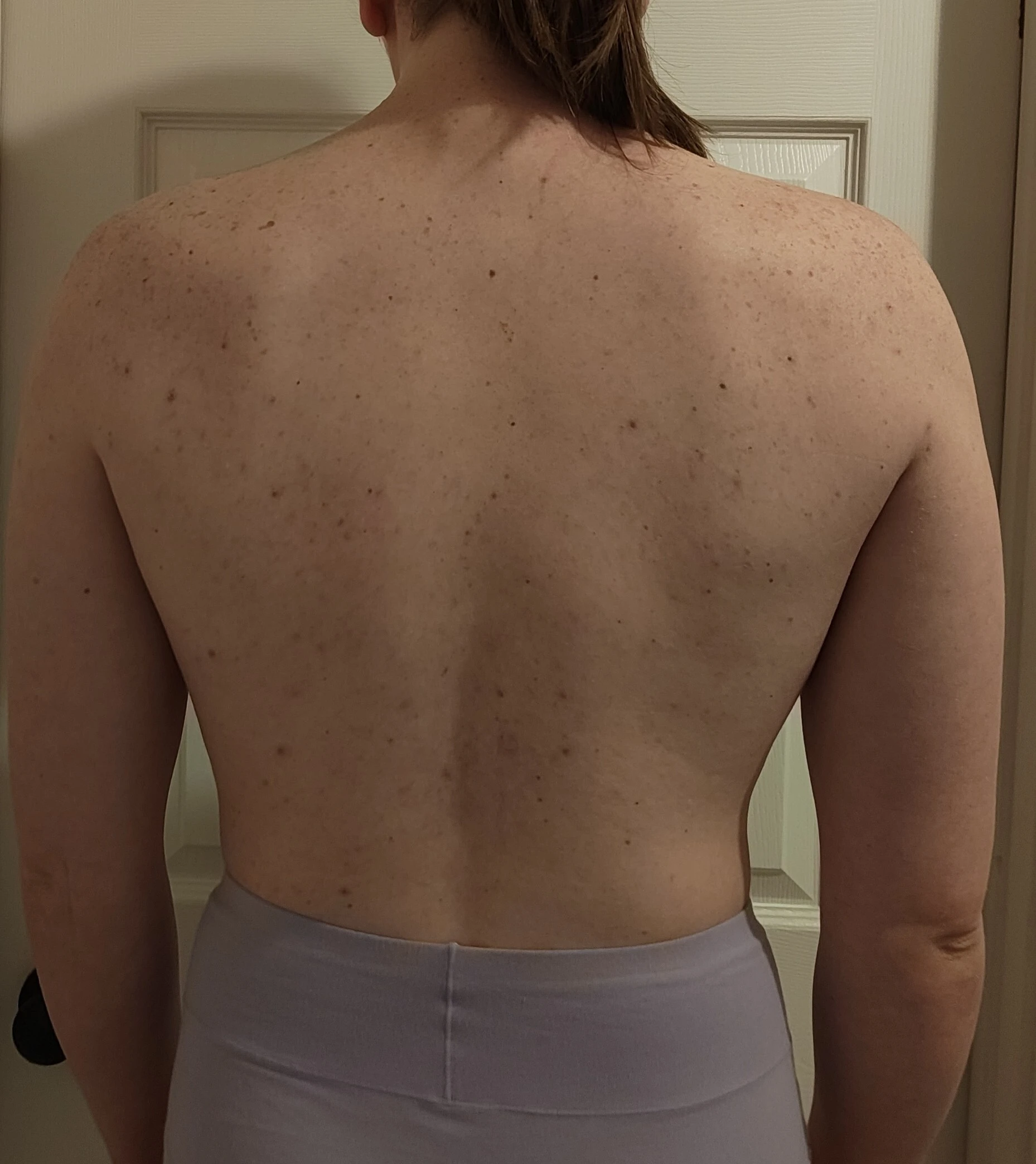 So look, your back does not look dissimilar to my CIS wife’s back, and while she is not a powerlifter we do both actively strength train 3 days a week. Your dysphoria is totally valid, but all I saw when you shared was a woman’s muscled back. They’ll probably go as you keep going on HRT, but it’s worth keeping in mind the lens you’re seeing your back in doesn’t necessarily reflect how you come across.