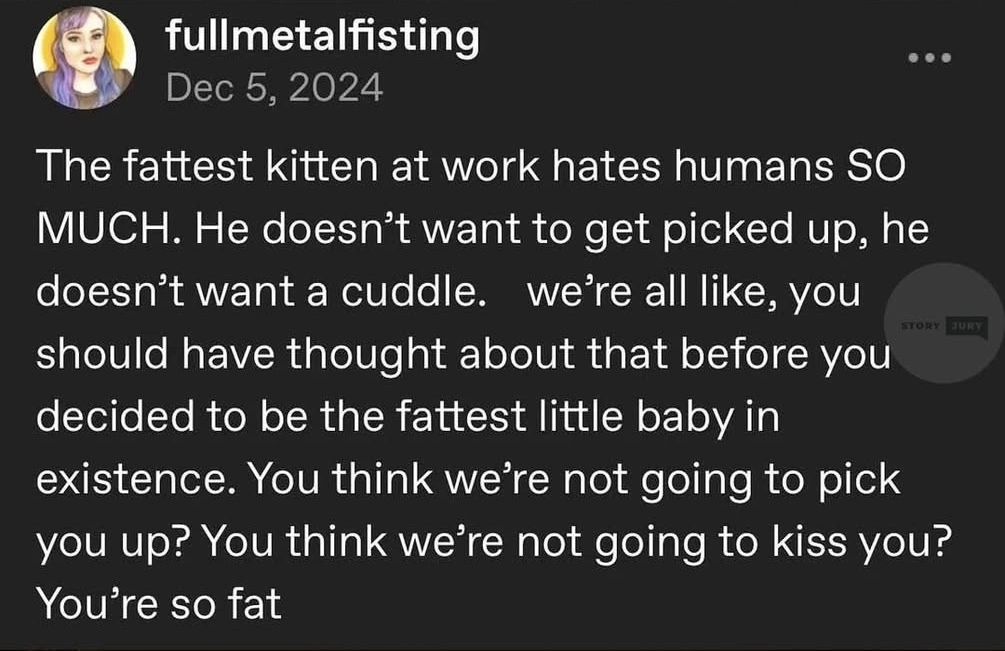but when it’s the mother… honestly i don’t think it’s a health risk for the kitten for it to be a bit plump during the first few weeks of its life. i’m not a veterinarian tho, so if i’m wrong feel free to correct me