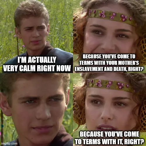 i mean they could have made him a master. that was sure to have solved his emotional instability