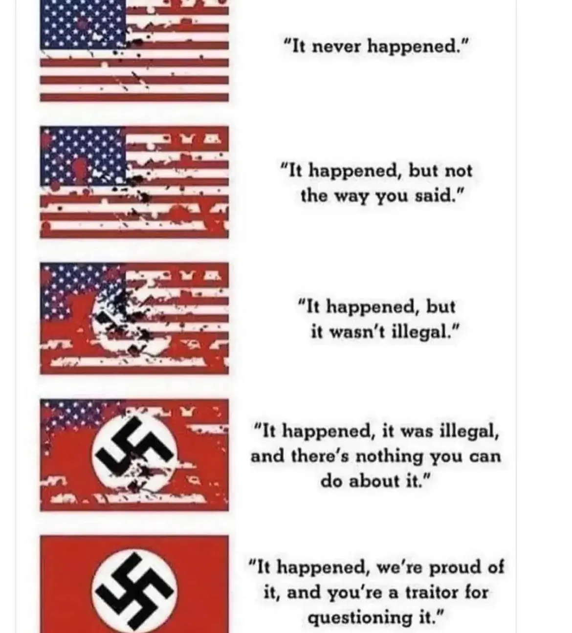 The Nazis were inspired by what went on in America. Genocide, concentration camps, segregation, forced sterilization, taking the children, etc