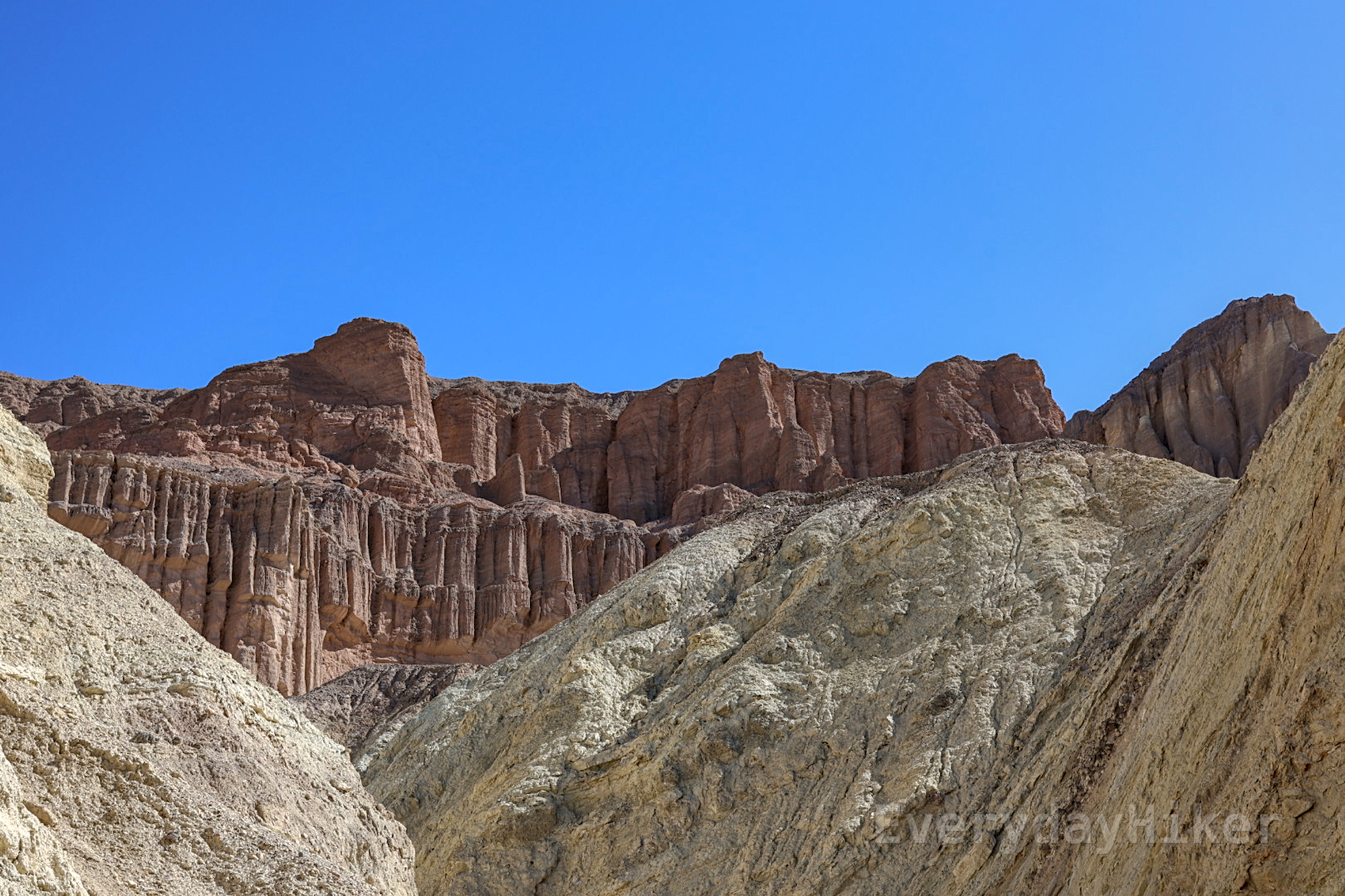 A highly popular loop taking you along a gravel wash in lower sections before passing under the vertical face of Manly Beacon after taking a slight detour to the Red Cathedral geologic formation. Views of varying colored cliff faces and hillsides will mesmerize and the trek is filled with delights. This is still in that period where a decent amount of photos were lost, so I don’t have better pictures of the Red Cathedral from up close unfortunately.