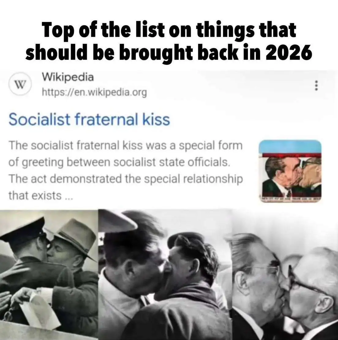 minus-squareMaeve@kbin.earthlinkfedilinkarrow-up3·2 months agohttp://2.bp.blogspot.com/-PAzPri0MCw8/UzDpRQHnAZI/AAAAAAAAI2I/BgAMUiWWPd4/s1600/The+Socialist+Fraternal+Kiss+between+Leonid+Brezhnev+and+Erich+Honecker+1979.jpg https://www.rferl.org/a/the-soviet-kiss-gone-but-not-missed/29161360.html
