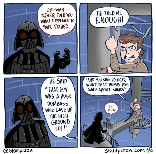 So precognition is a force power. Which means that Anakin, the most powerful force user in the universe, almost assuredly knew the answer some time before he actually heard it. He waited until it was socially appropriate to act indignant, and I find that hilarious.