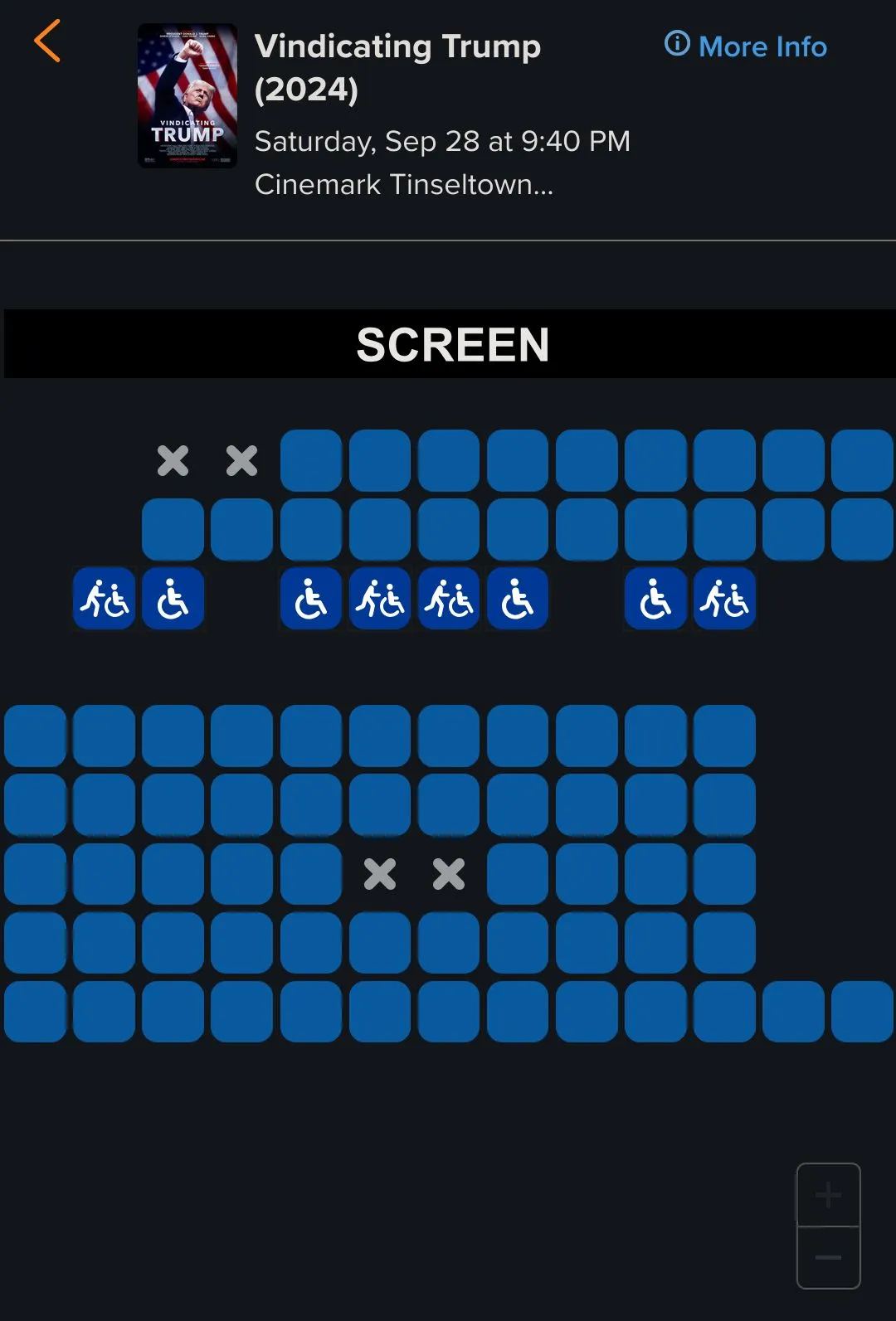 Every theater has about 2 seats blocked off because they squeak too much and have been complained about. I’m blown away at the amount of religious content at theaters. There is tons. Some of it is basically like going to evangelical church. They’re not movies they’re sermons in theaters.