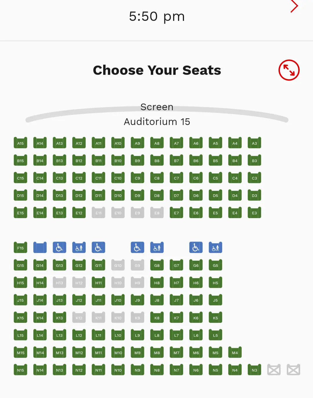 This theater seating arangement pisses me off. Why did they remove 2 seats on all the rows behind the handicap seat row? And why are there 2 seats even further to the right, but X’d off in the back row??? If anything that just shows theres enough space for 4 more seats in EVERY row behind the handicaped row! Is that just empty floor space??? Why is that there??? Like a mini dance floor in the theater???