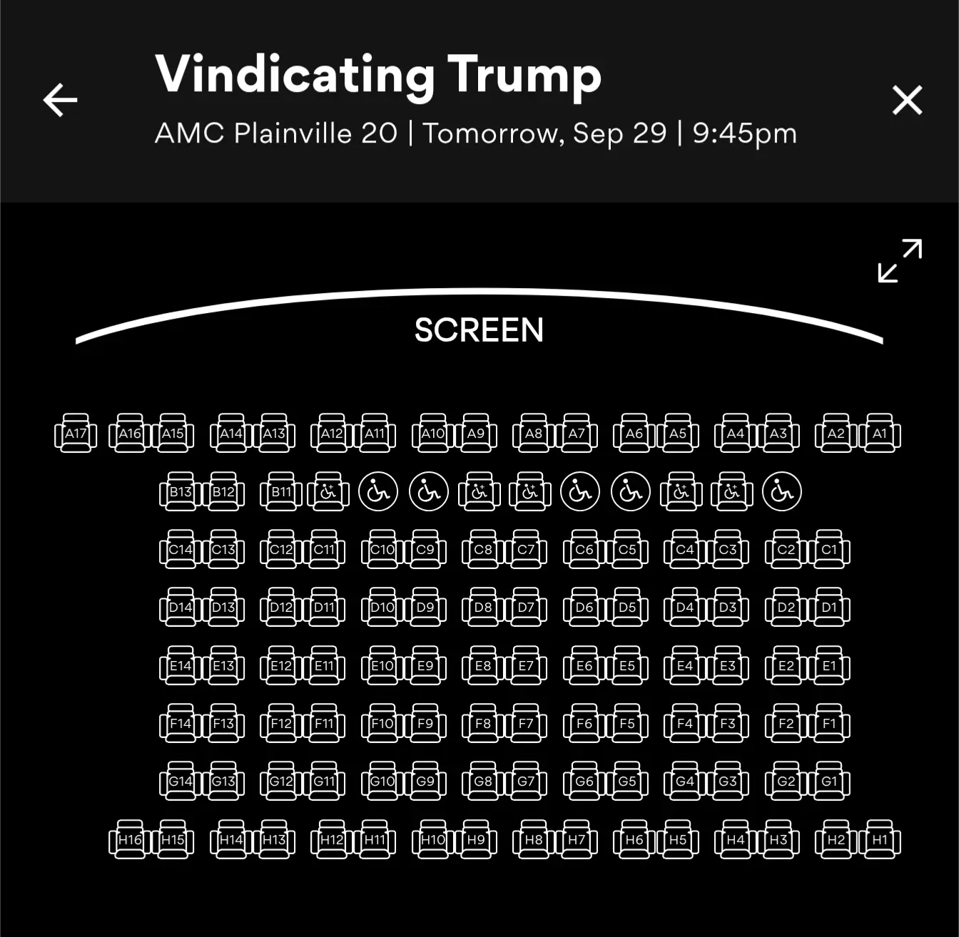 I dont know how much I believe the theater. This is tomorrow in Connecticut. 4:55 sold out but all the other times have zero to 7 people. Yeah it’s a Sunday but I would t put it past thr gop to be artificially inflating box office receipts.