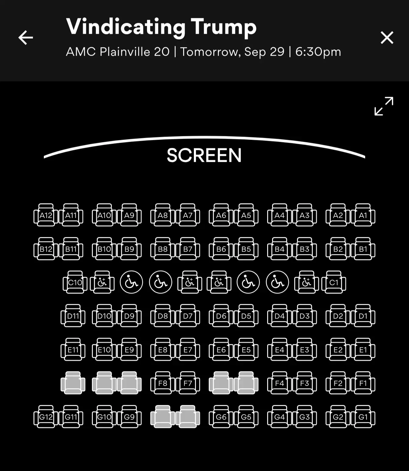 And even further, only those exact same two seats are ‘taken’ for every single showing.
