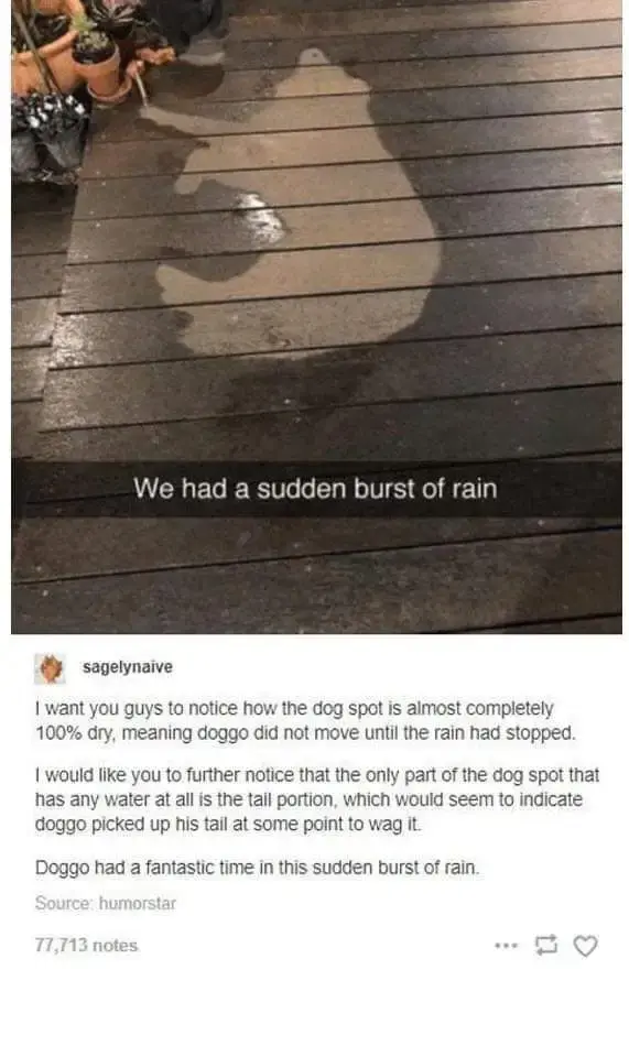 You can see the ‘more wet’ spot where the wagging tail was thumping the deck