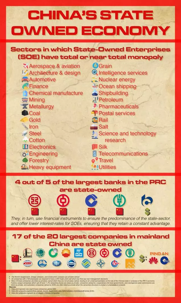 In the context of tighter control between the state and business, it’s important to understand the class dynamics. The US Empire is a dictatorship of the bourgeoisie, the large firms and key industries are privately owned, and the state entrenches their power. In the PRC, public ownership is the principle aspect, and the working class is in control of the state. The commanding heights of industry in China are all SOEs, and the bourgeoisie that controls small and medium firms are kept in check by the socialist state. You’re confusing form for essence, by only looking at similarities and ignoring the differences, you come to false conclusions.