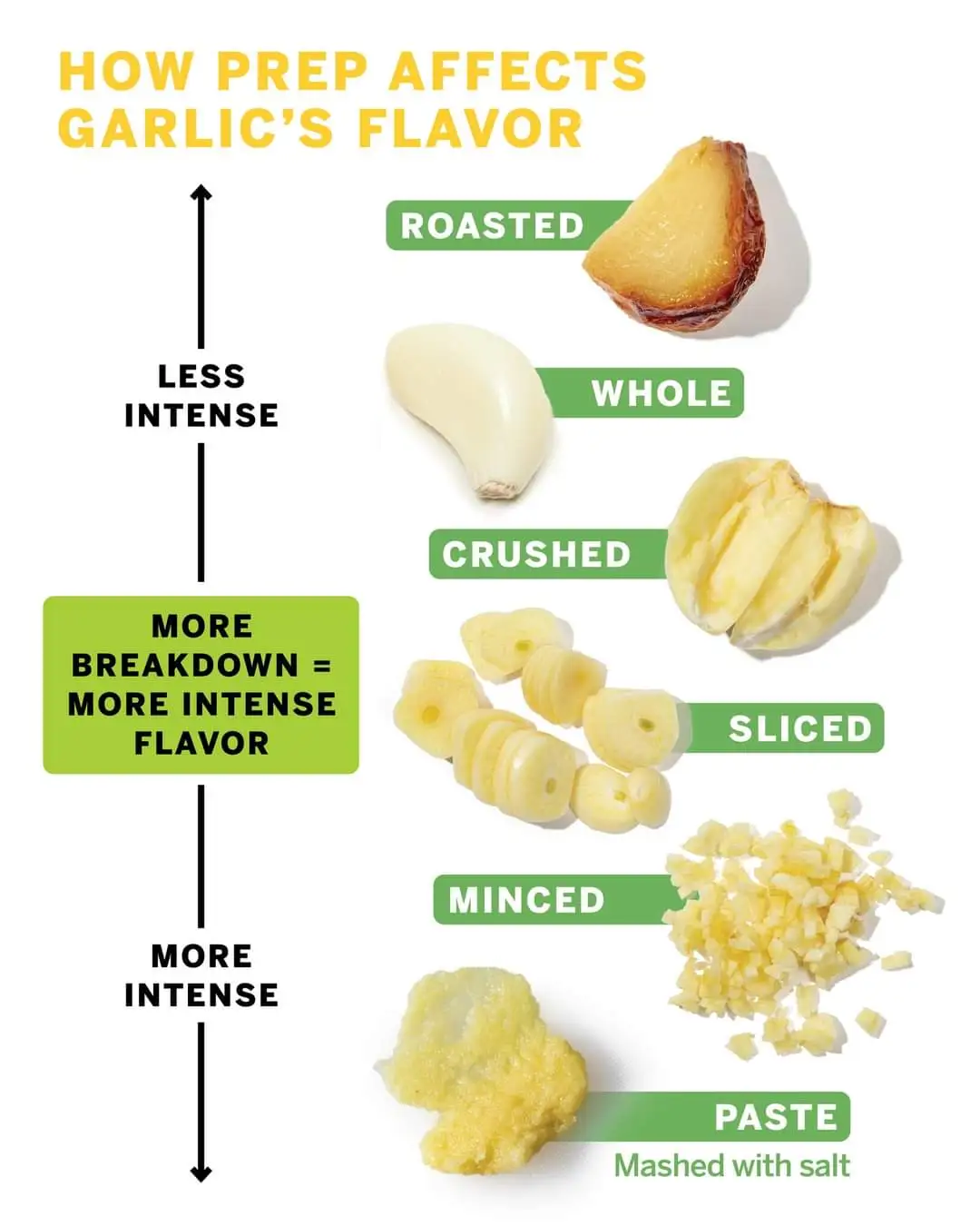 What it comes down to, the more garlic flavor you want out of a clove, then the more you need to damage the garlic’s cellular walls.