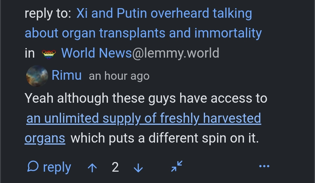 These views are disgusting, and being an anti-communist is what leads Rimu to accept them more readily. Further, equating slur filters to things like PieFed’s social credit score system is apples to oranges, and defaults against communist instances that unsuspecting new admins wouldn’t think to check just further displays Rimu’s clear ideological opposition to Lemmy on the basis of Lemmy having a lot of communists.