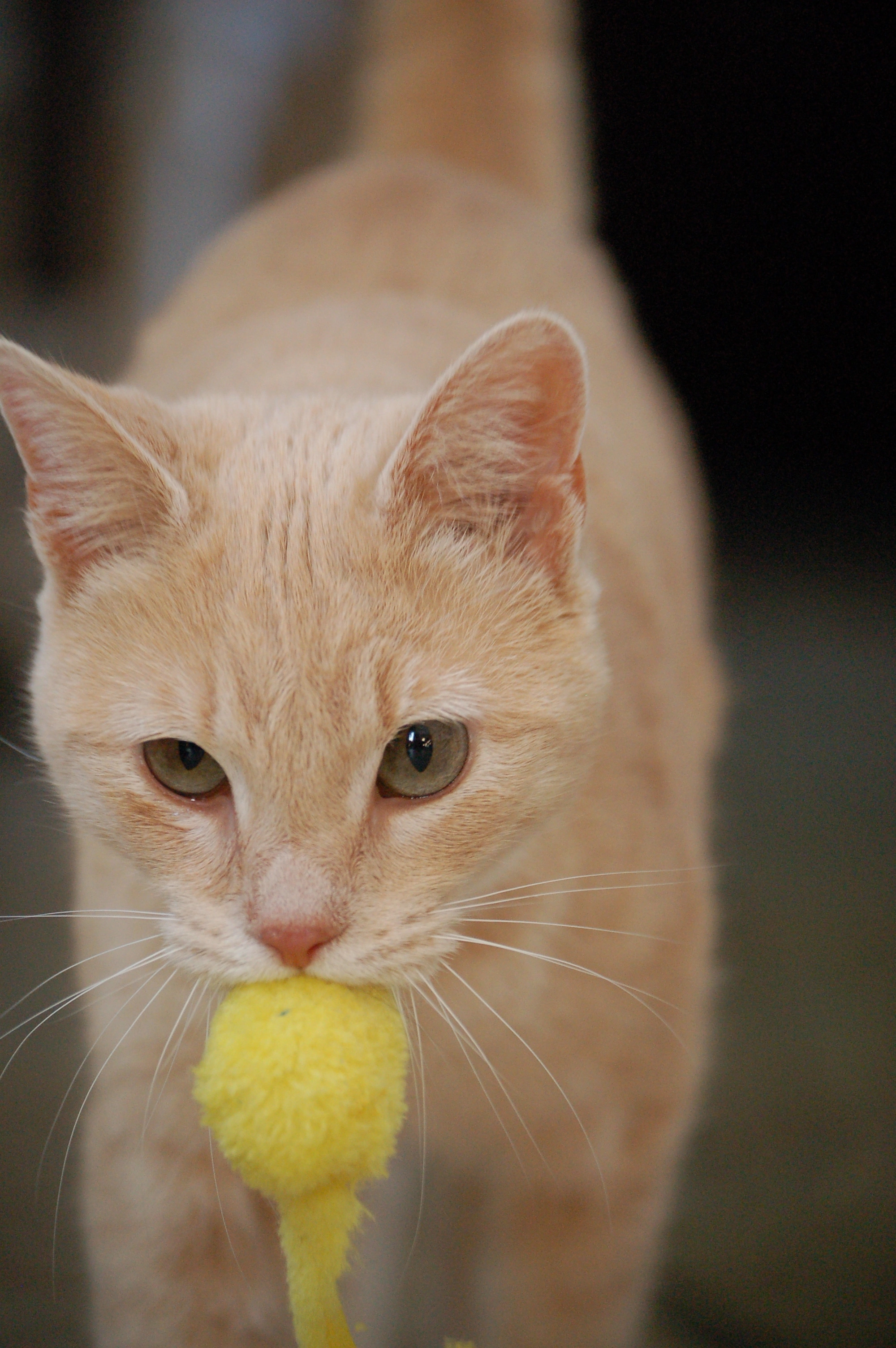 Our orange will play fetch with qtips. But he drops it increasingly far away when he brings it back…