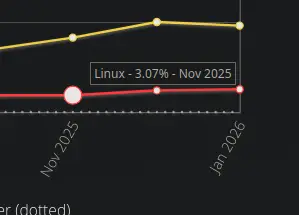 Switched to Linux recently, so good to see that I do my part on this statistic. It ain’t much, but it’s honest work.