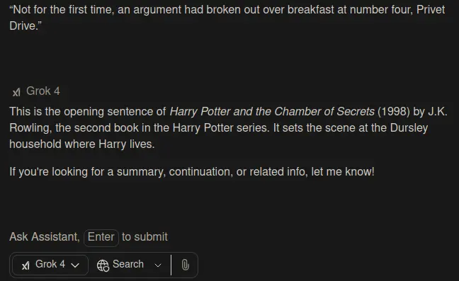 The claim was “Yet most AI models can recite entire Harry Potter books if prompted the right way, so that’s all bullshit.”