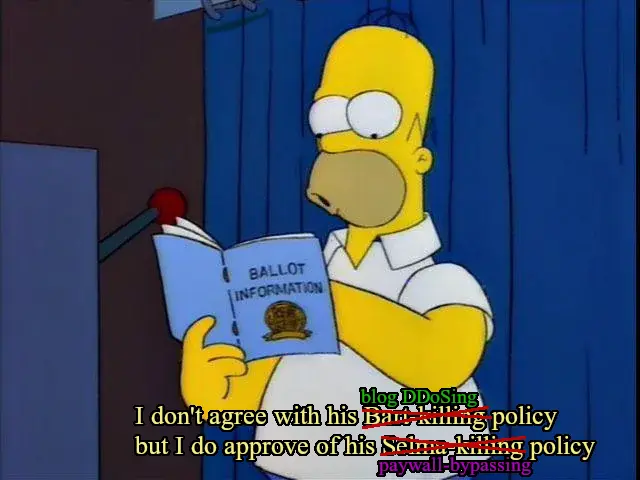 We also cannot take for granted how connections with those countries are used to delegitimize people providing valuable services. Bypass Paywalls Clean in particular has had a litany of people assume it’s untrustworthy because of its current hosting situation because they don’t know the history of it and how it’s been kicked off of every other public repository that was stateside.