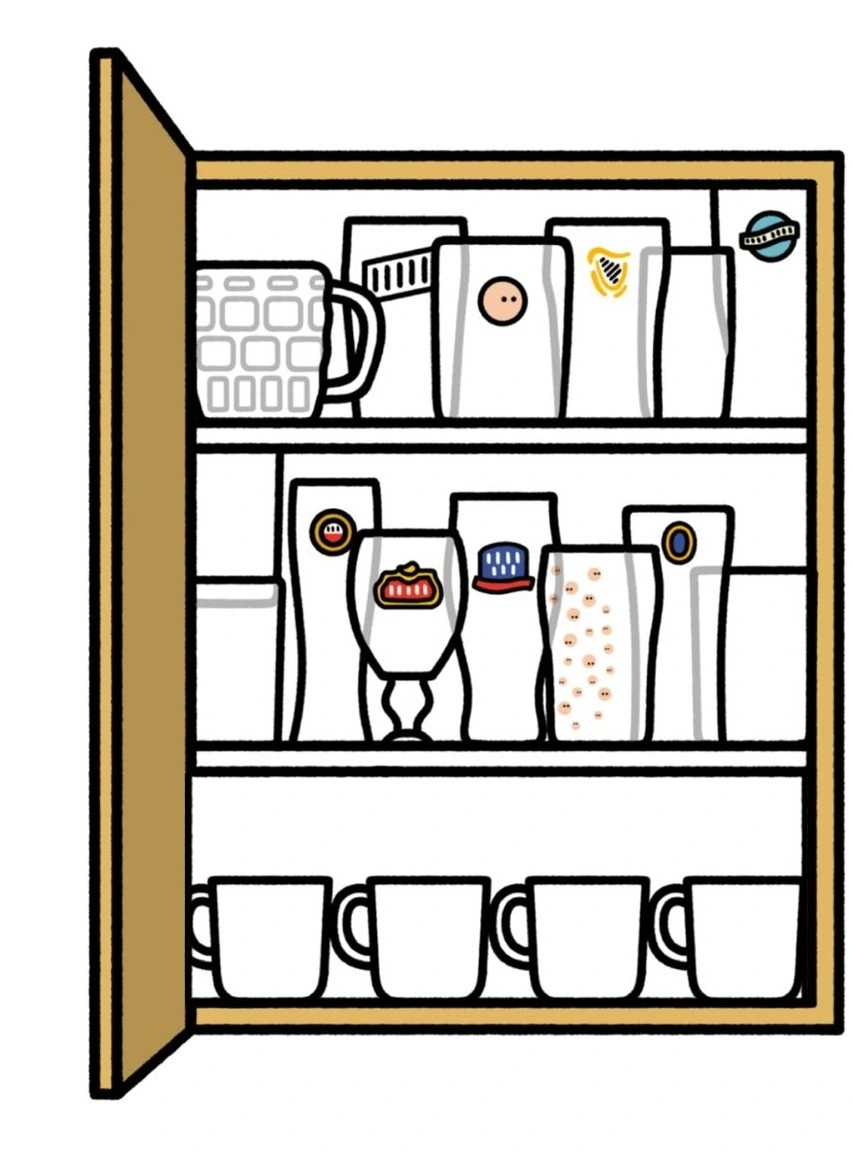 You forgot the cup hooks underneath, and the large drinking steins/tankards/catfood on top