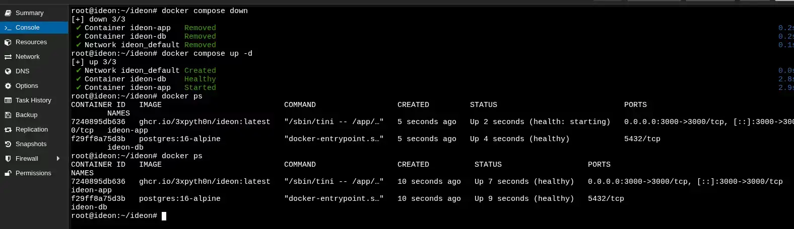 (Side note, I just put the ENV values directly into the compose. I know this is not recommended, so I put the values to use if you actually mount the env_file like you’re supposed to. )services: # ------- Ideon-App ------- ideon-app: image: ghcr.io/3xpyth0n/ideon:latest container_name: ideon-app # If you want to do it correctly, mount the ENV_FILE # env_file: # - ${ENV_FILE:-.env} # If you want to do it janky, follow me environment: #If you mount a ENV_File, only PUID and PGID are needed below. PUID: 1000 # Optional: User ID for file ownership (default: 1001) PGID: 1000 # Optional: Group ID for file ownership (default: 1001) # From the ENV_FILE: APP_PORT: 3001 # Host port to expose the app (container listens on 3000) # I had Homepage on port 3000 so I moved Ideon to 3001 APP_URL: http://mymachinesip:3001/ # Public base URL of the app (used for invitations and SSO auth) TIMEZONE: UTC # Canonical timezone for server logs ONLY ### Database #SQLITE_PATH=./storage/dev.db # Override SQLite path (optional) # Note: PostgreSQL variables are not required in "development" mode, SQLite is used automatically (storage/dev.db). DB_HOST: ideon-db # PostgreSQL host or service name (Docker Compose: ideon-db) DB_PORT: 5432 # PostgreSQL port (default 5432) DB_NAME: ideon # PostgreSQL database name DB_USER: ideon # PostgreSQL username DB_PASS: # I ran "openssl rand -base64 15" in the terminal to get PW # PostgreSQL password SECRET_KEY: # I ran "openssl rand -hex 32" in the terminal to get PW depends_on: ideon-db: condition: service_healthy restart: unless-stopped ports: - 3001:3001 #"${APP_PORT:-3000}:${APP_PORT:-3000}" volumes: - /mnt/app/containers/ideon/app:/app/storage healthcheck: test: ["CMD", "curl", "-f", "http://localhost:3001/api/health"] #["CMD", "curl", "-f", "http://localhost/:${APP_PORT:-3000}/api/health"] interval: 5s timeout: 5s retries: 5 start_period: 10s # ------- Ideon-DB ------- ideon-db: image: postgres:16-alpine container_name: ideon-db restart: unless-stopped environment: POSTGRES_USER: ideon # ${DB_USER} POSTGRES_PASSWORD: #same as DB_PASS #${DB_PASS} POSTGRES_DB: ideon # ${DB_NAME} volumes: - /mnt/app/containers/ideon/db:/var/lib/postgresql/data #I just hardmount everything healthcheck: test: ["CMD-SHELL", "pg_isready -U ideon -d ideon"] #["CMD-SHELL", "pg_isready -U ${DB_USER} -d ${DB_NAME}"] interval: 2s timeout: 5s retries: 5So far I love it. I wanted to use it locally for some low level importance notes before I try to move more over and set it up with an actual mounted env file on a VPS.