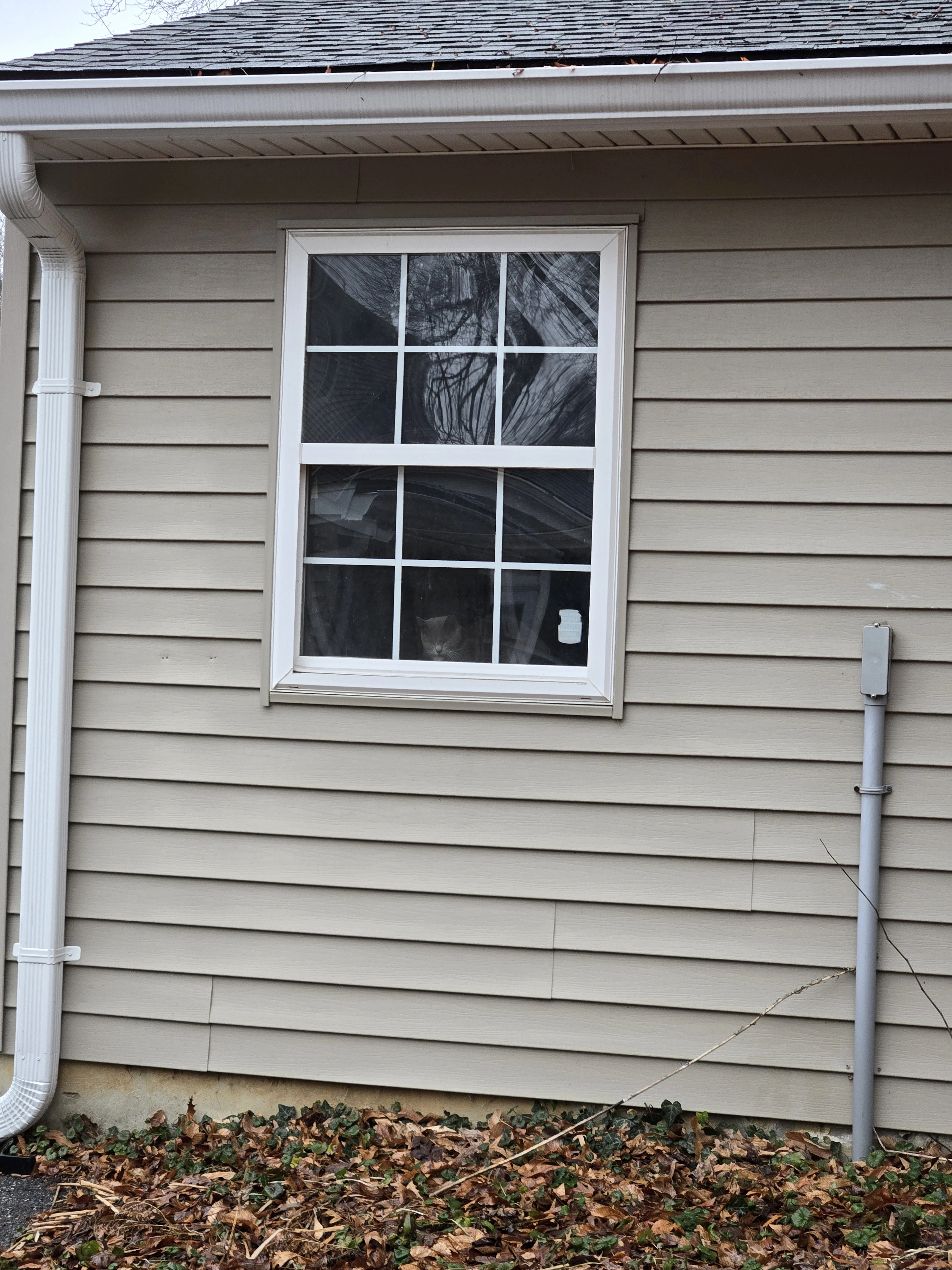She definitely took off and hid in the back corner when I tried to get close. Unfortunately there’s a bunch of stuff back there, and I don’t see any reason to spook her further. I don’t want to force her out into the rain. Now that I think about it, our dog was very interested in that corner a few days ago.