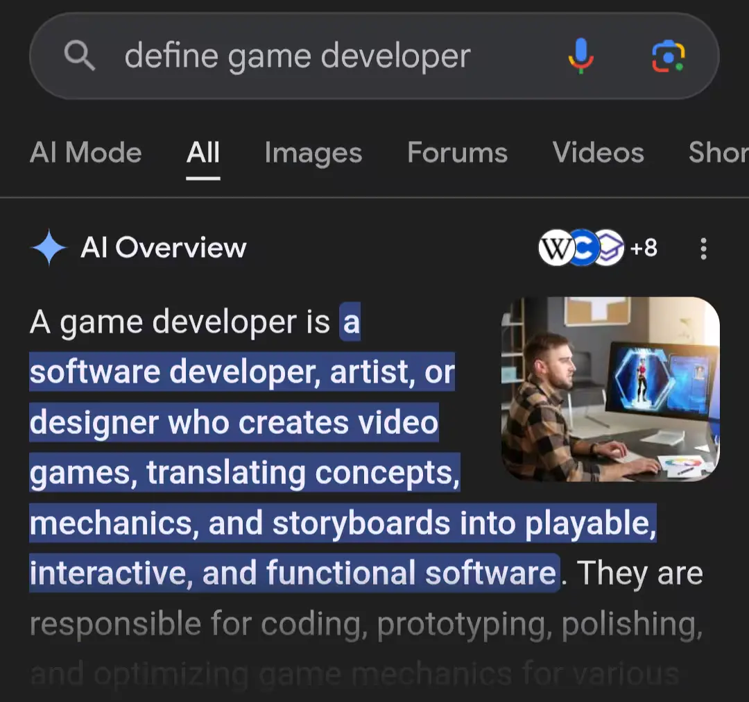 Well, we’re talking about game DEVELOPERS here, so of course the generative AI use will be mainly, if not always code generation. So I don’t even know why you’re bringing up any other kind of genAI.
