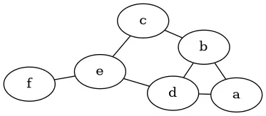 graph foo { a--b a--d b--c d--e c--e e--f b--d }Processed with: