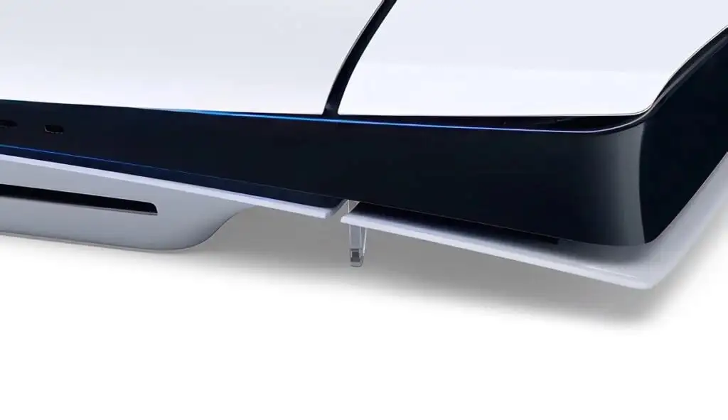 It’s the stand that comes with the console. I didn’t notice them at first and was wondering why my ps5 was a bit unstable. Just a clear little clip thing that hides underneath.