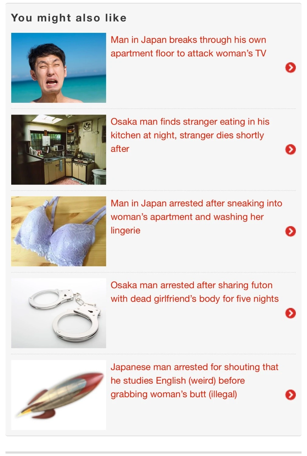 Japanese man arrested for shouting that he studies English (weird) before grabbing woman’s butt (illegal)” was a 10/10 article for sure