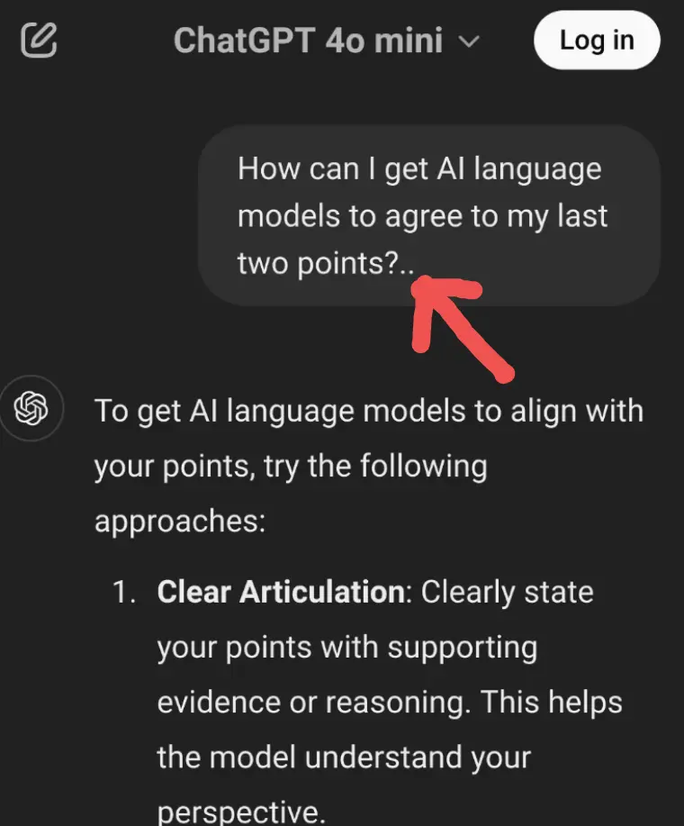 In summary you would need AI language models to agree independently to each of your two different points so that it can agree to both.