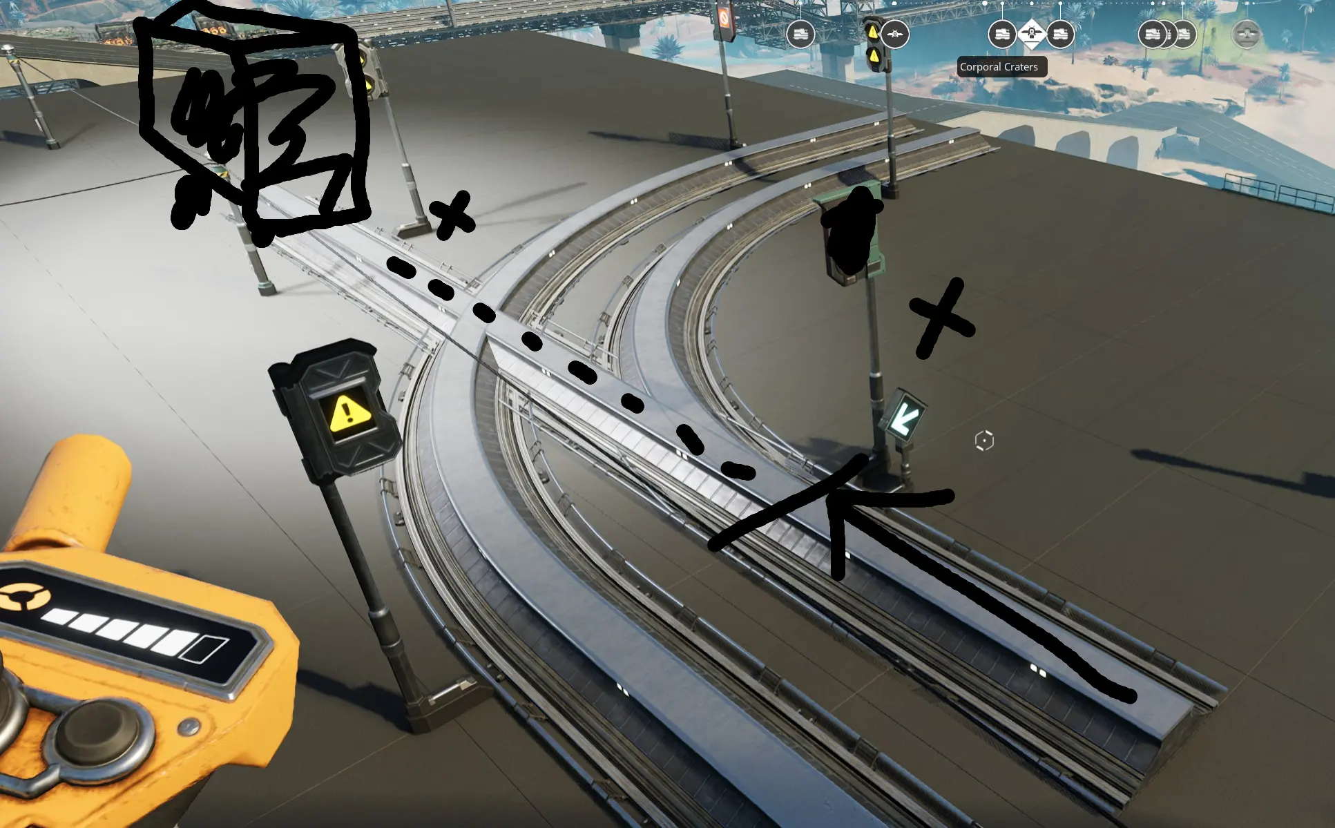 Making curves and straight lines can be a real pain when you’re getting started. I want to write it down, don’t spend time making your curves perfect. Make your straight tracks first, then connect your curves and let the game handle the spline for you. Like this: