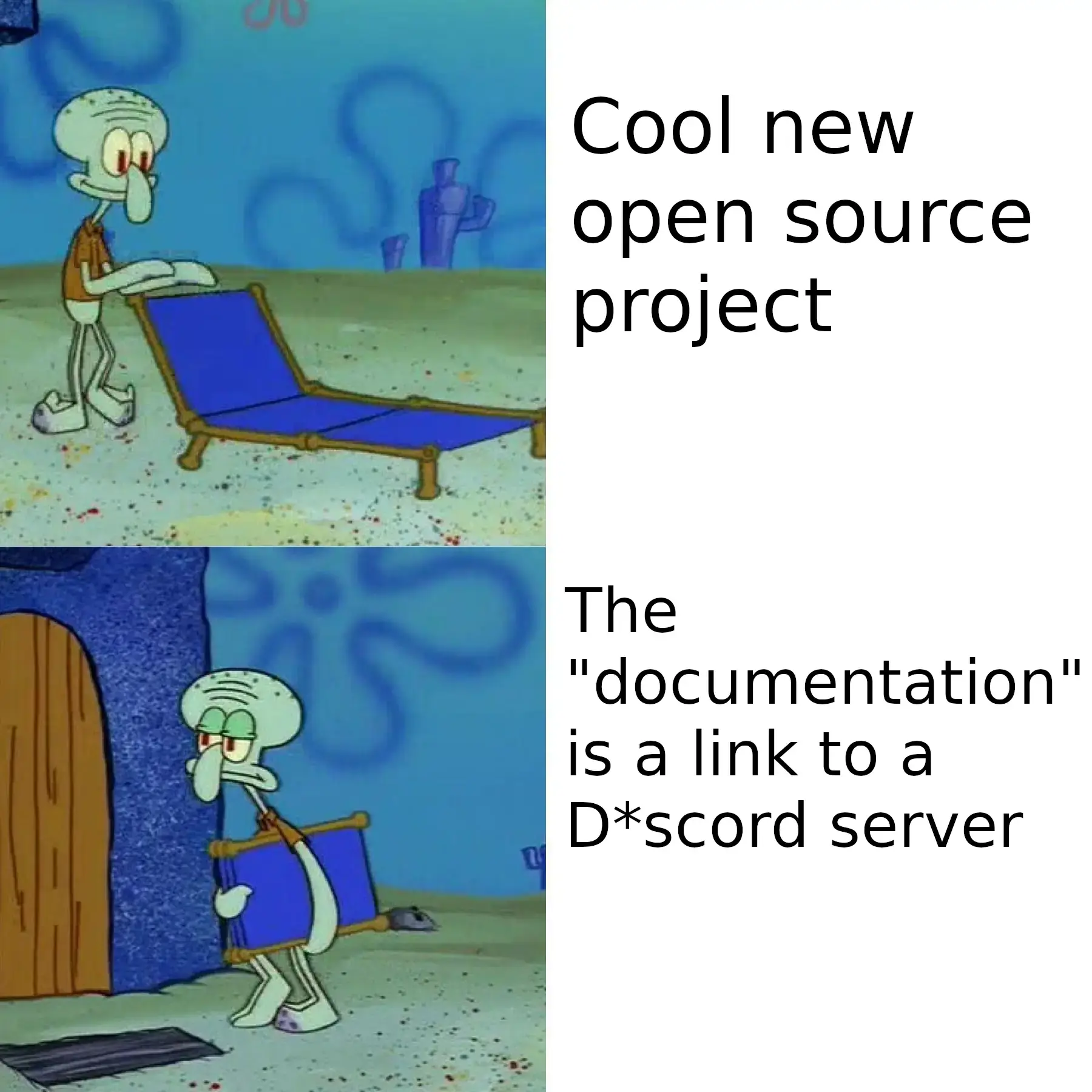 Imagine being in a corporate environment trying to implement an OSS into your platform and having to tell your 50 yo teammate: “Oh yeah, just pop in this Discord server real quick to see any relevant info”. Instant credibility loss