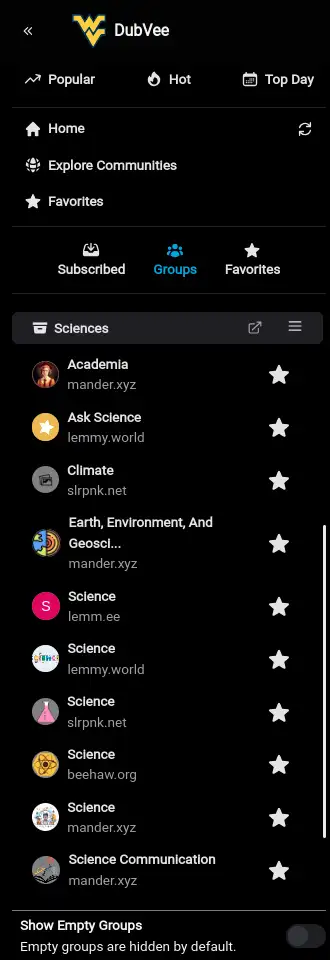 PieFed also offers pre-built categories of communities, although if I’m understanding correctly that an individual, non-admin user of Tesseract can make their own, then I much prefer that approach! (PieFed seems controlled only at the admin level, so I’ve seen different categories on different instances, but an individual non-admin user cannot engage with such directly)