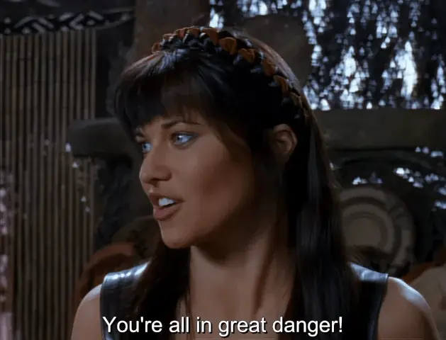 Never mind, I zoomed in and could see it’s Lucy in Xena
