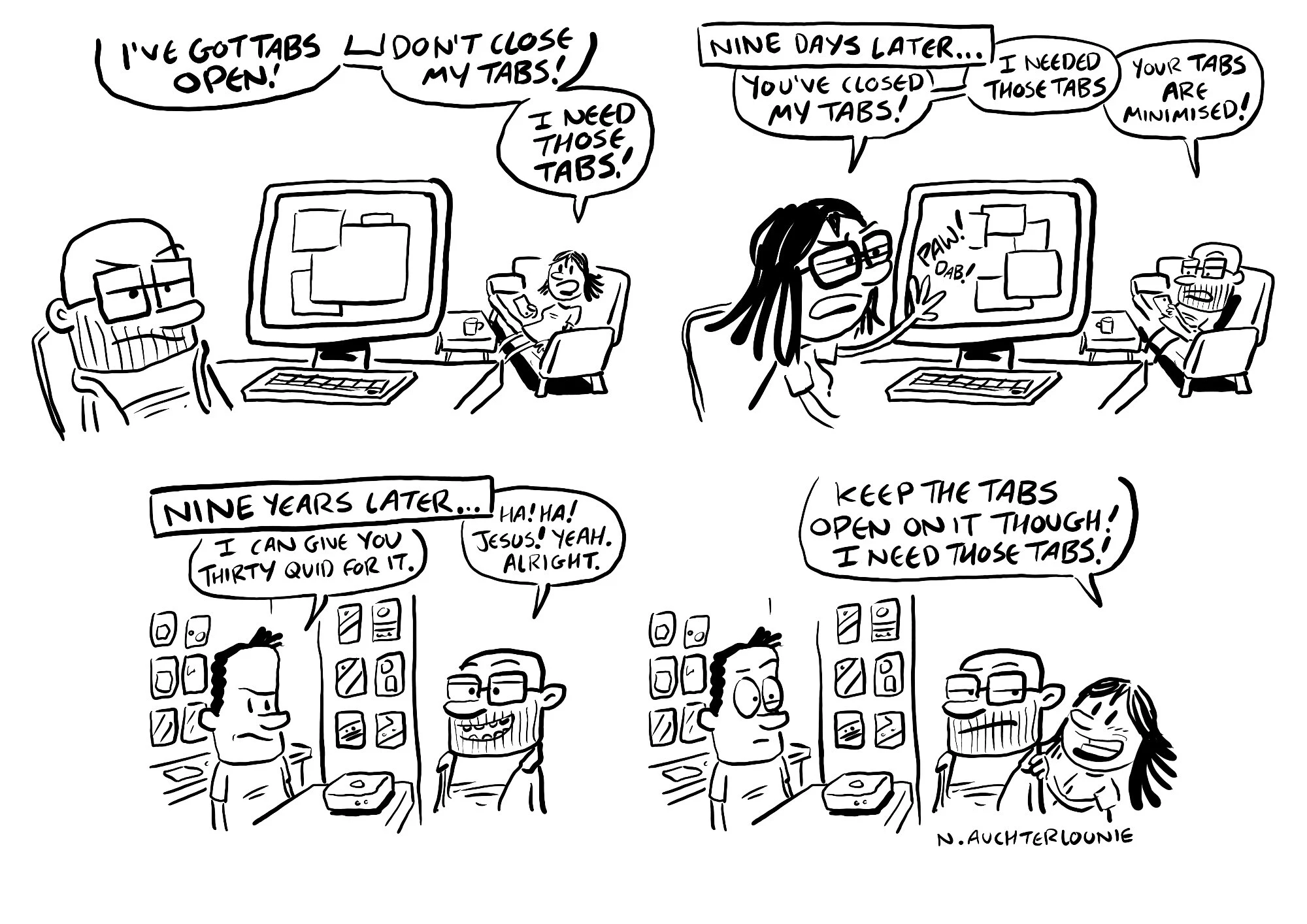 I’ve got tabs open! Don’t close my tabs! I need those tabs!