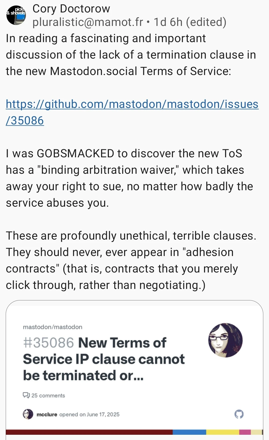 Bottom line: Don’t write anything on the internet that you don’t want publicly displayed. Anyone can save it and then you can’t force them to delete it. That applies to the entire internet. It also applies to the fediverse.