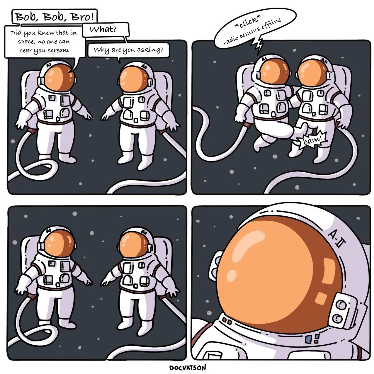 there could have been a whole row of panels showing the kicker inching towards the kickee. and the silent scream is so much better personified with the kickee floating away out od the panels.