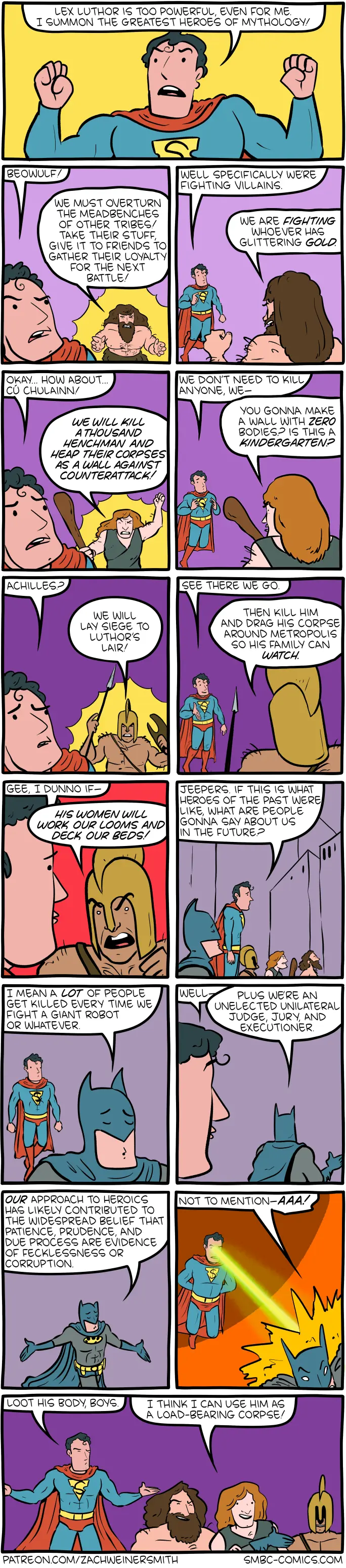 Also Superman almost always goes out of his way to make sure that nobody dies just because he’s fighting a giant robot. I don’t think these are good characters for this joke.