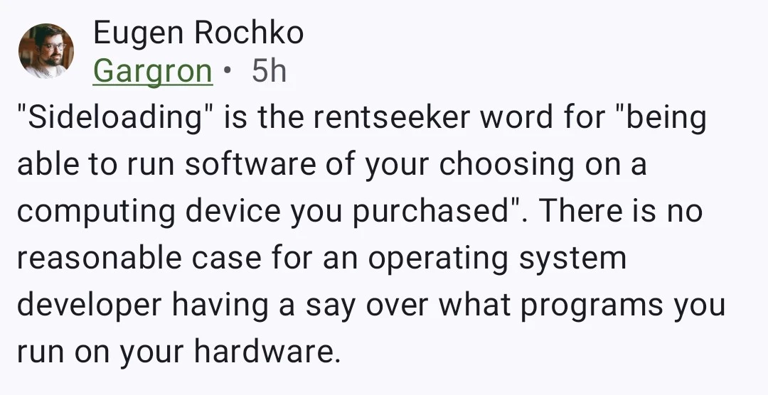 Open source Android is a thing??? TIL that might be my solution to this long term since I sideload apps regularly.
