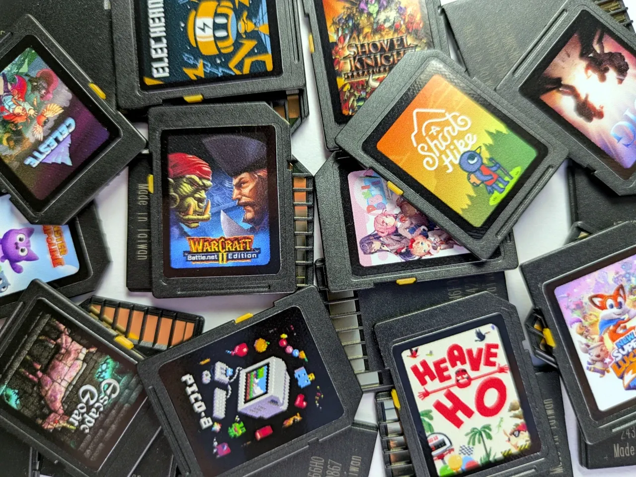 What makes it extra fun is that the ‘cartridges’ are really just SD cards you load games onto. Label them, stack them, swap them around, it’s built to make you feel like you’re back in the ’90s, digging through a shoebox of game carts. For someone who wasn’t alive for that era of gaming (not even close, honestly), it’s a neat little glimpse of what it was like. A tactile vision of when games came on actual carts…well, kind of.