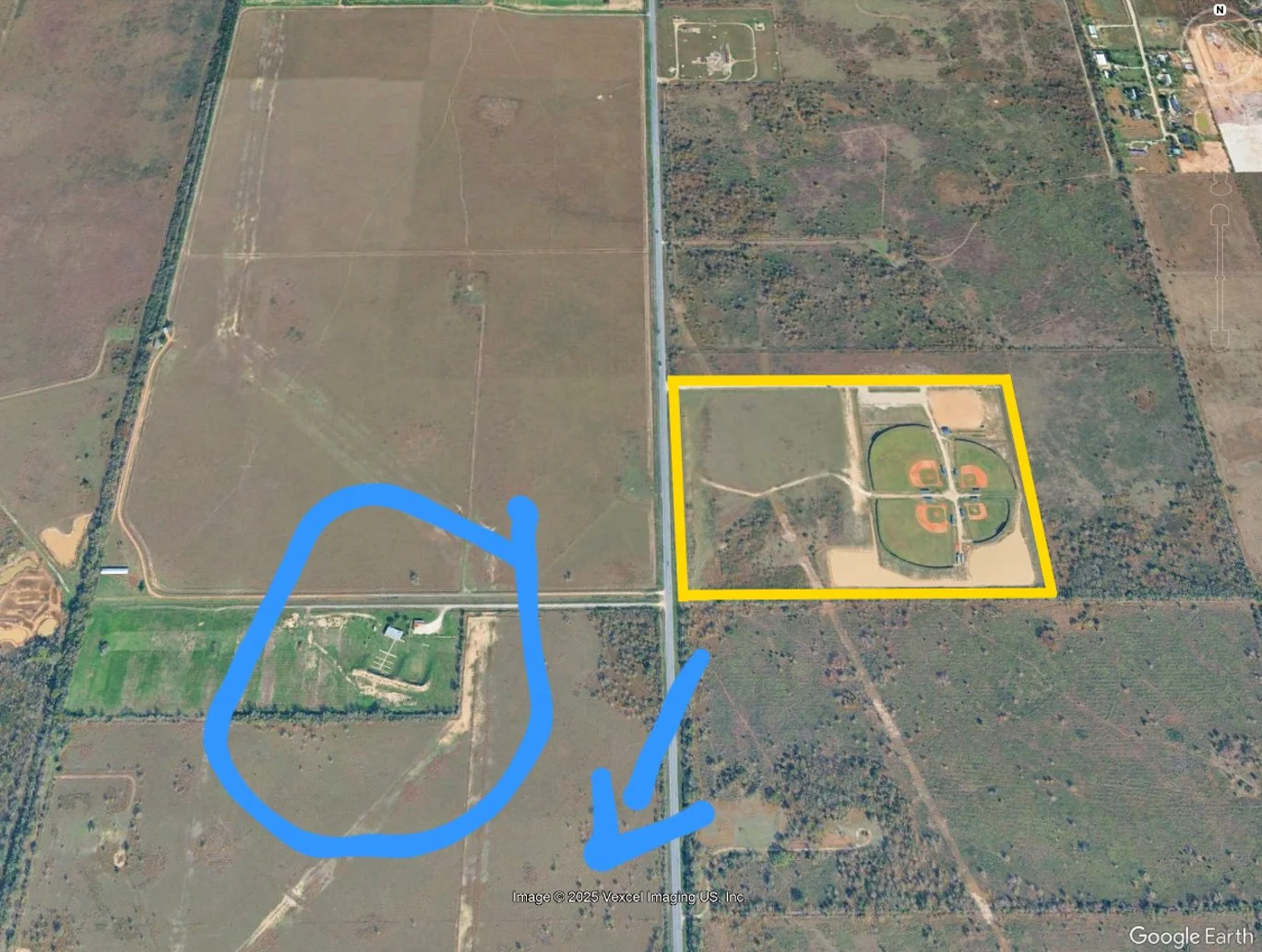 I am pretty sure this is the gun range and you’re supposed to shoot in the direction of the blue arrow. That big mound of earth is where the targets would be and is supposed to catch stray bullets. Something tells me that redneck fuckery was involved.